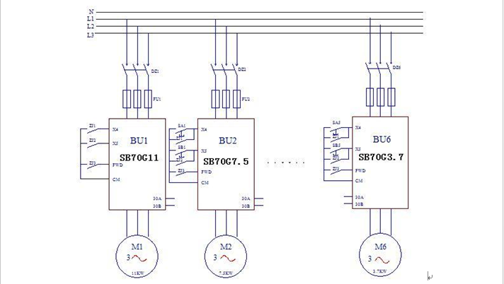 四川眉山仲輝集團造紙廠(chǎng),生產(chǎn)多種文化用紙,有多條造紙生產(chǎn)線(xiàn),主要是1092小紙機,也有1770紙機。這些紙機是早年的產(chǎn)品,傳動(dòng)部分有總軸傳動(dòng)和分部傳動(dòng),分部傳動(dòng)又有電磁調速傳動(dòng)和直流調速傳動(dòng)。由于使用年代較久,故障率較高,迫切需要改造。從2003年起,先后對這些紙機實(shí)施了變頻改造,全部改造都使用了希望森蘭的變頻器,主要使用SB70G系列變頻器。實(shí)踐證明,SB70G系列通用變頻器,開(kāi)環(huán)控制的精度可以適應類(lèi)似1092、1770這類(lèi)低速紙機的要求,并且變頻器的穩定性和可靠性較高,減少了因電磁調速和直流調速故障而產(chǎn)生的停機損失。
