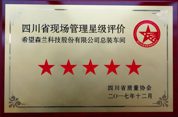 201814,公司總裝車(chē)間被評為“四川省現場(chǎng)管理星級評價(jià)五星級現場(chǎng)”。同期榮獲五星級現場(chǎng)的公司還有通威太陽(yáng)能(成都)有限公司、中國核動(dòng)力研究設計院設計所、中國兵器裝備集團自動(dòng)化研究所。